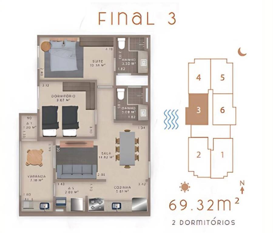 Área Útil69,32m²
