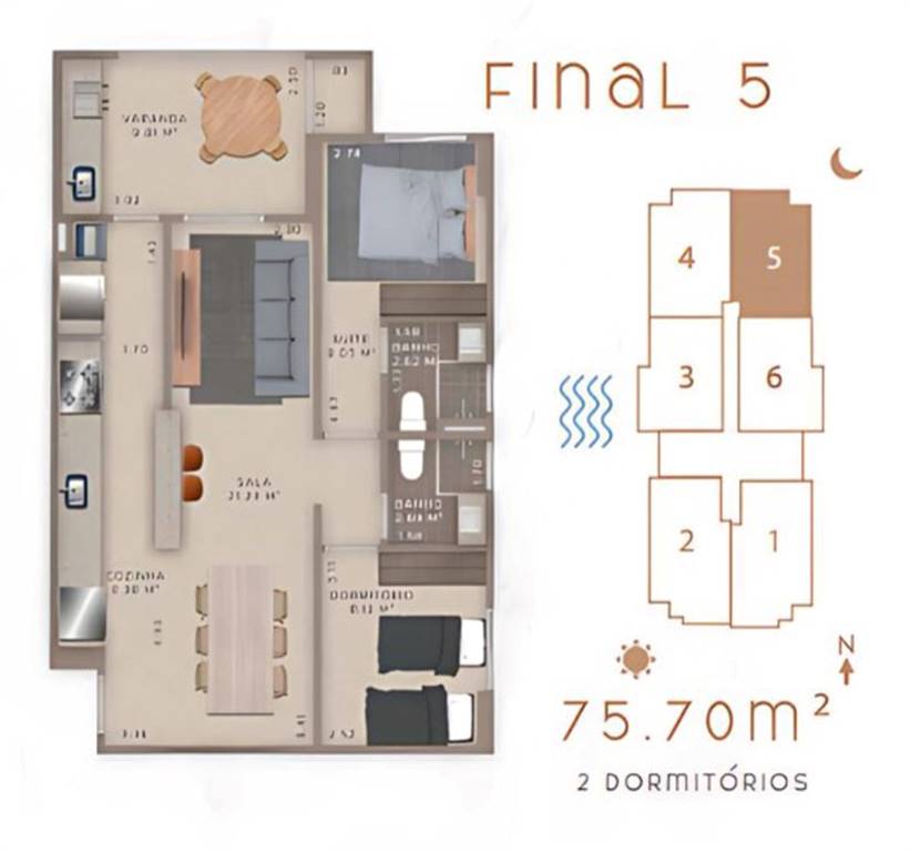 Área Útil75,70m²